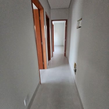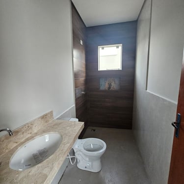 Imóvel com suíte master, quarto social, salas integradas, e cozinha americana com bancada em granito. Banheiros com nichos e acabamentos de qualidade. Garagem coberta com portão eletrônico e interfone.