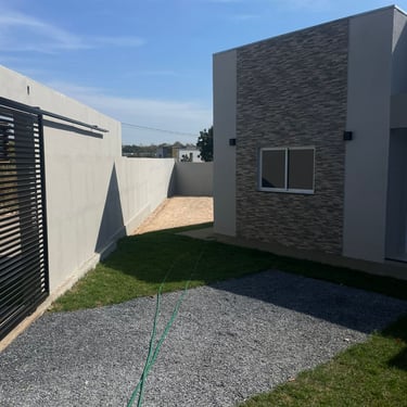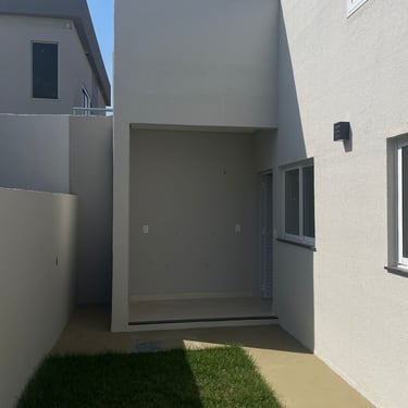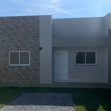 Imóvel com dois quartos, sendo uma suíte, banheiro social, sala e cozinha integradas, e área de serviço prática. A casa, toda em laje, conta com pé direito elevado de 2,77 metros até o forro de gesso e 3,00 metros até a laje, proporcionando conforto adicional. As portas de madeira são de alta qualidade e vedação eficiente, enquanto as portas externas e janelas em alumínio garantem segurança, praticidade e estilo. A iluminação é toda em LED, com nichos iluminados nos banheiros. Com calçadas externas, portão moderno e resistente, e linha de interruptores WEG, este imóvel oferece um ambiente seguro e funcional.