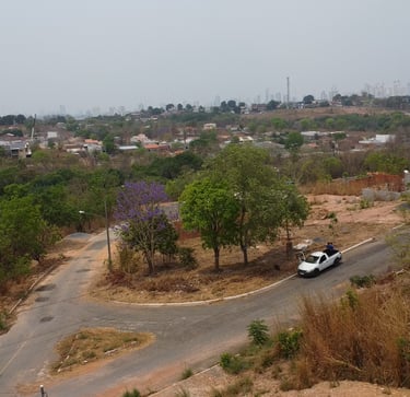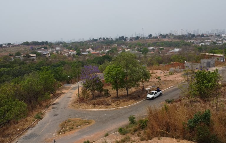 Lote em área urbana com amplo espaço aberto, vegetação esparsa e com bela visão para cidade.