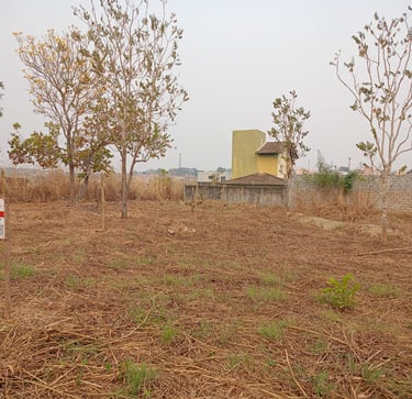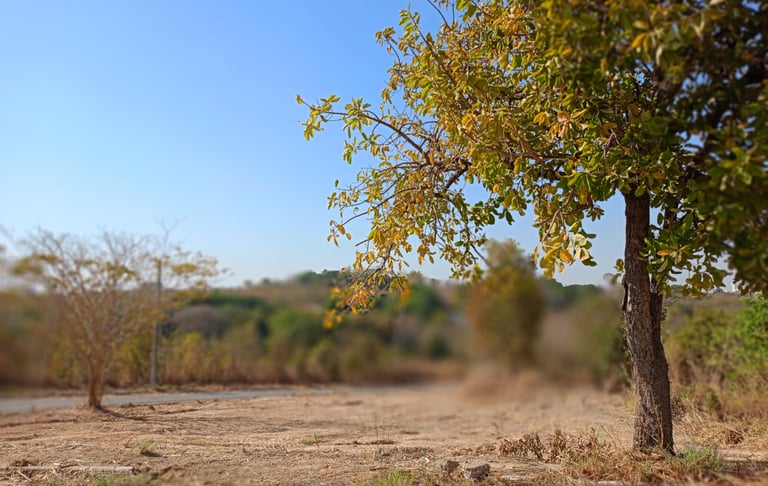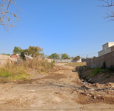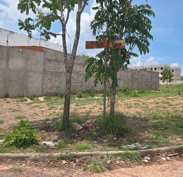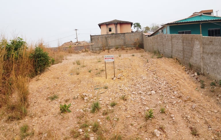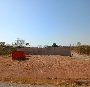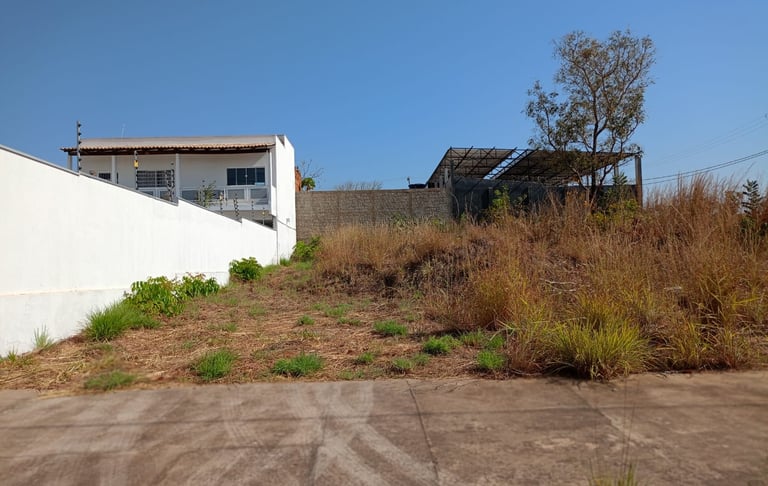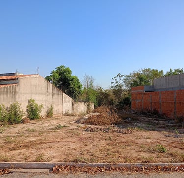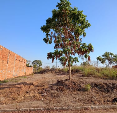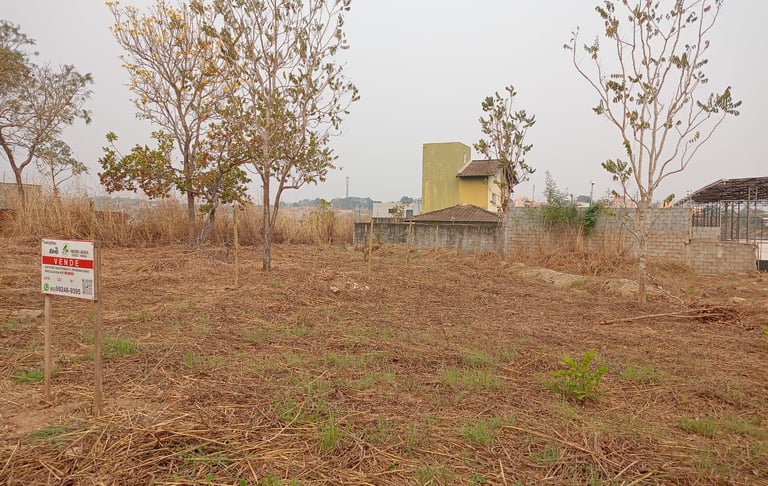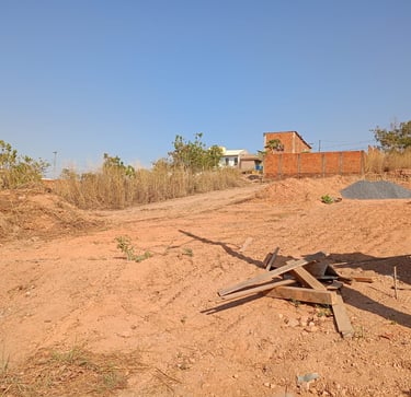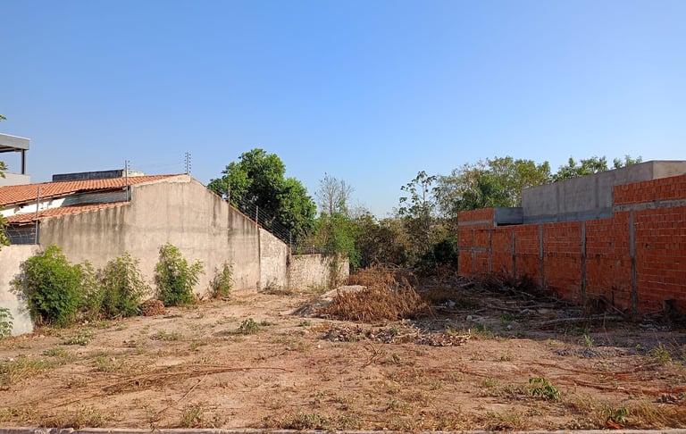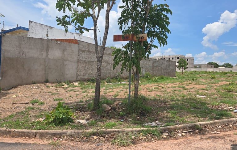 Lote em área urbana com amplo espaço aberto e vegetação esparsa.