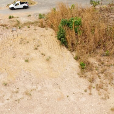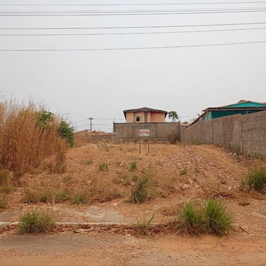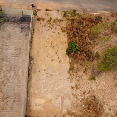 Lote em área urbana com amplo espaço aberto e vegetação esparsa.