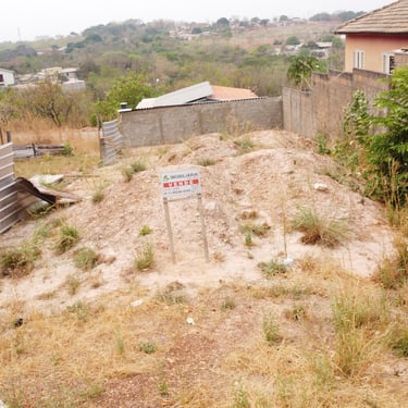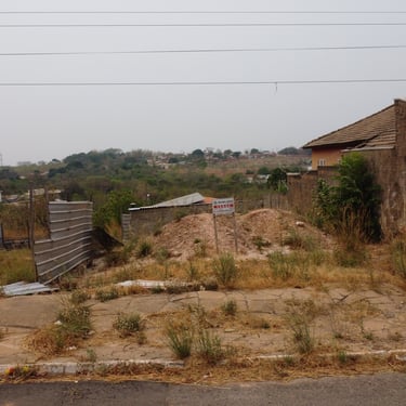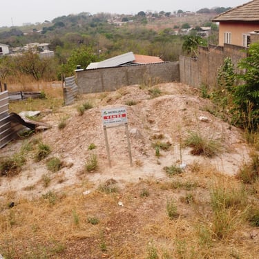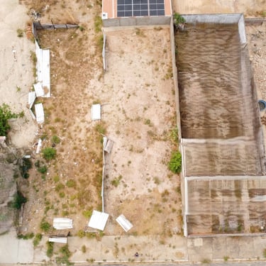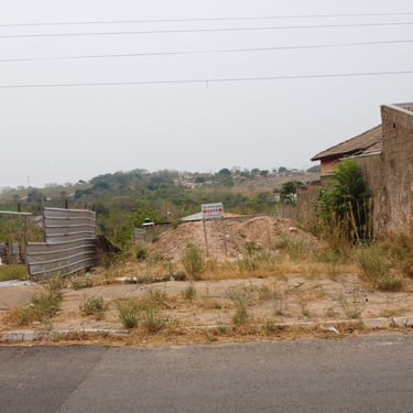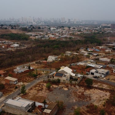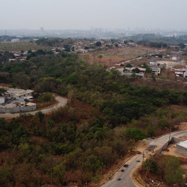 Lote em área urbana com amplo espaço aberto e vegetação esparsa.