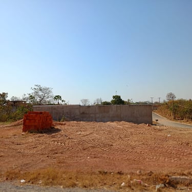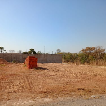 Lote em área urbana com amplo espaço aberto e vegetação esparsa.