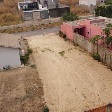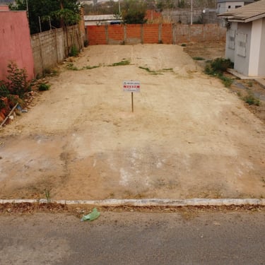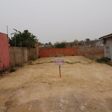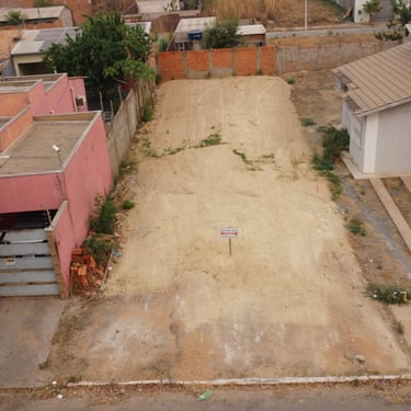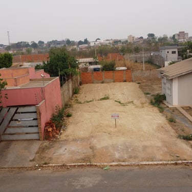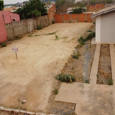 Lote em área urbana com amplo espaço aberto e vegetação esparsa.