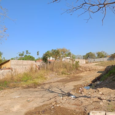 Lote em área urbana com amplo espaço aberto e vegetação esparsa.