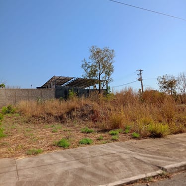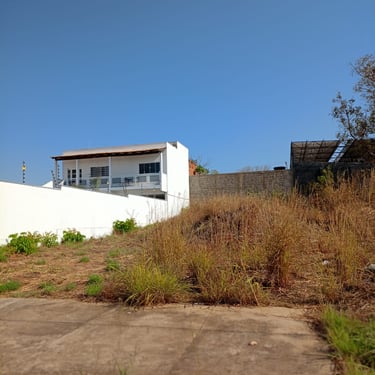 Lote em área urbana com amplo espaço aberto e vegetação esparsa.