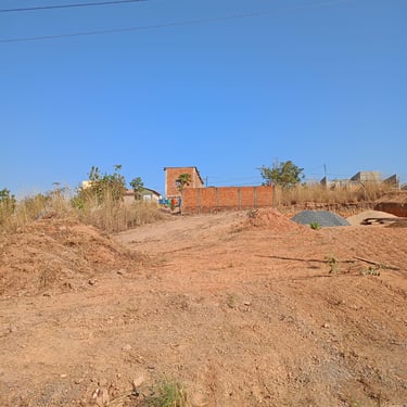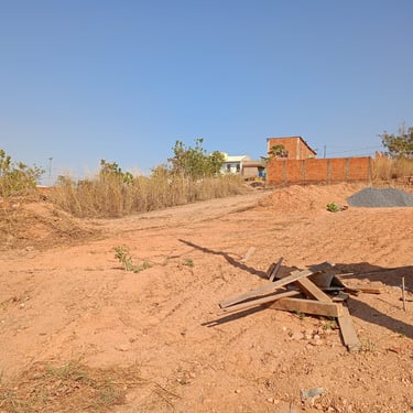 Lote em área urbana com amplo espaço aberto e vegetação esparsa.